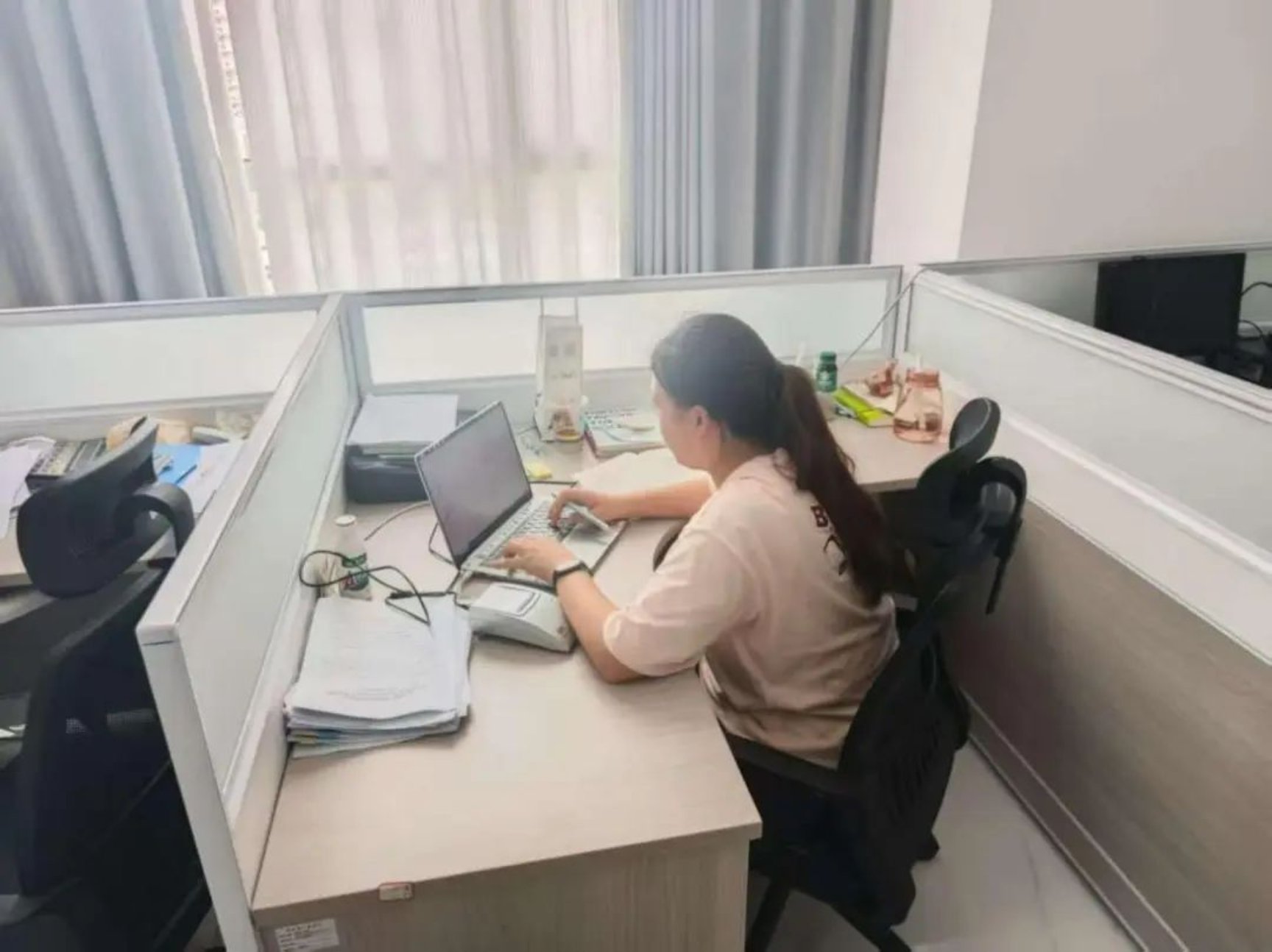 外国语学院王鹏媛在白庄乡政府办公室协助文稿誊写工作。